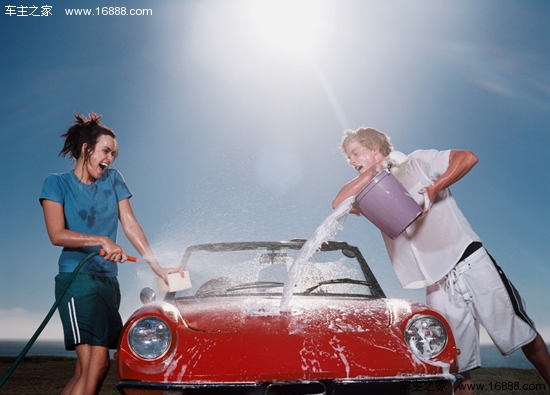 学问2:有无预洗程序,车子脏了,许多尘土、泥沙附在车身上。如果上来就用水枪冲,用海棉擦,洗车倒变成了给车“打沙皮”。专业的洗车应该在洗车前增加一道预洗的程序。即使用专业的设备将特别的预洗液喷洒在车身上,并等待一两分钟,经过浸泡,大部分的沙土可以与车漆脱离,再用水枪冲洗,可以避免上洗车液时,沙泥划伤漆面的危险。