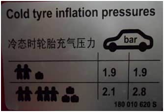 ·参看燃油加注口盖板上的标准轮胎气压表。
